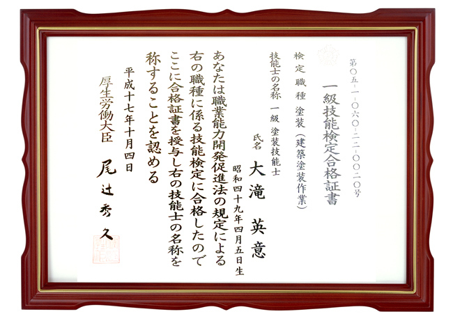 国家資格で実務経験7年以上国家検定を受け学科と実技に合格したものが持つ免許